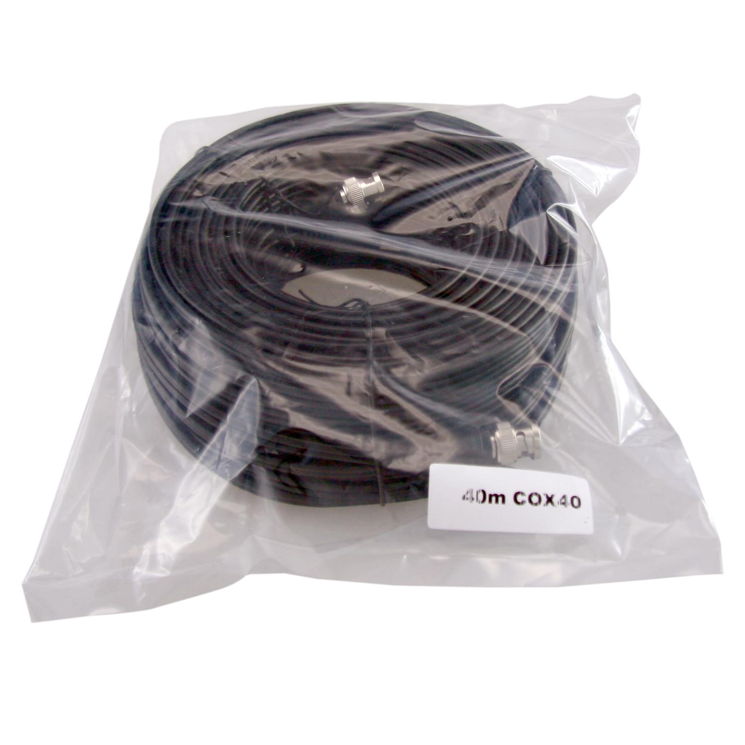 SAFIRE coaxial extension cable for video and power. Combined cable RG59 + DC. Low loss. Fixed length of 40 meters, with male BNC video connector on the ends.