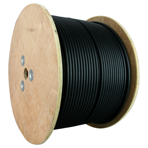 Coaxial RG59 cable for CCTV installations. Bobbin of 300 meters. Black cable insulation.