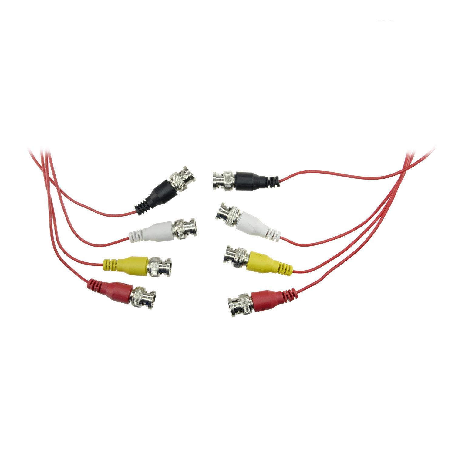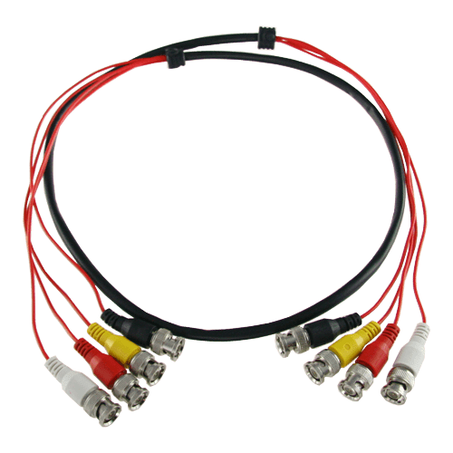 Multiple ready cable of 1,5 m. It has 4 male BNC connections on each end, allowing the interconnection of devices with female BNC output. Different colours on the connectors to facilitate the interconnection. Essential element to carry the video signal from Balun receiving boxes to digital video recorders.