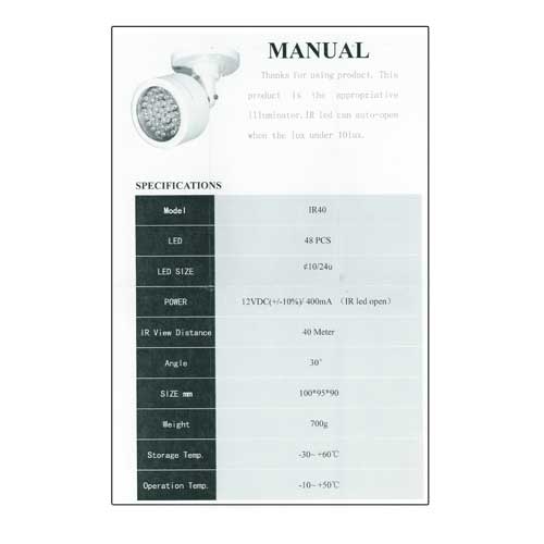 - Infrared spotlight range 40m