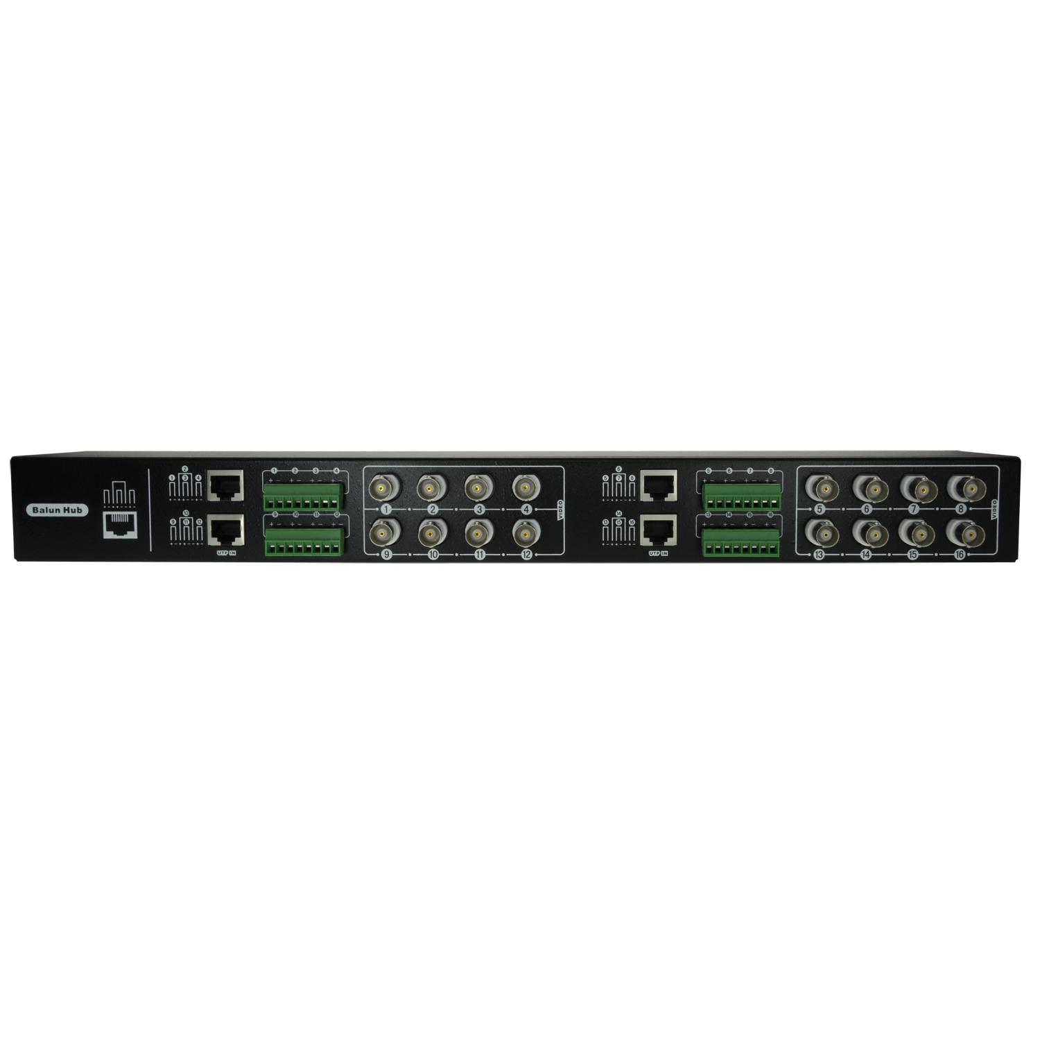 The adapter has 16 BNC connectors for connecting to a DVR. Includes 16 individual baluns BA612P-HAC to connect to each camera.