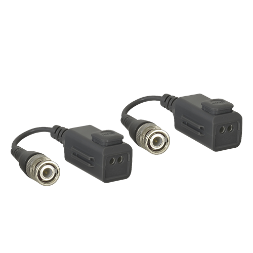Optimized for the transmission of the video signal from 1 HDTVI, HDCVI, AHD or CVBS camera via twisted pair. It has male BNC connector and cable insertion terminal with Splicing Button, two-pin connector.