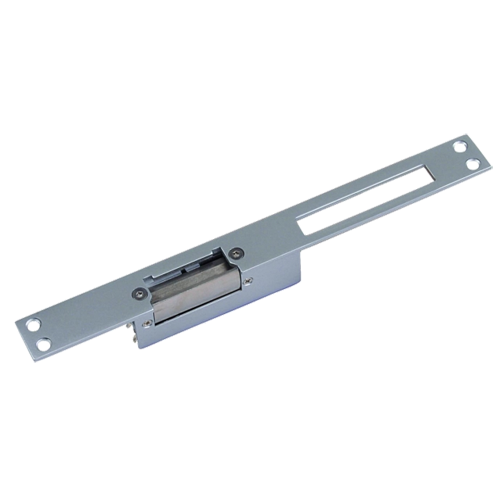 Electric strike with electromagnetic hinged catch for closing or opening the door. Works in Fail Safe mode (NC), is unlocked in the absence of current in the electromagnet, so it is suitable for use in doors that must meet standards for emergency exit. For surface mounting in wooden, metallic, PVC and fire doors.