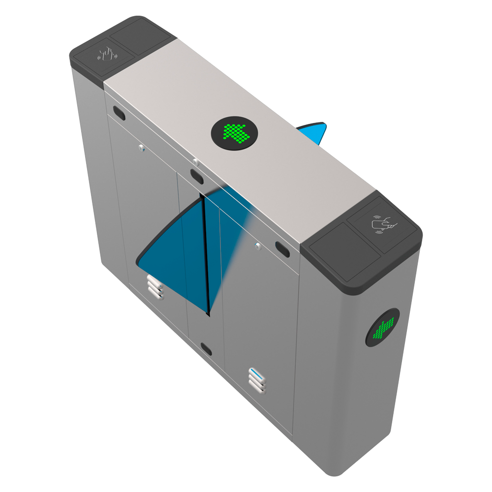 | Barrier movement | Retractable folding for opening of the acrylic barrier inside the turnstile |