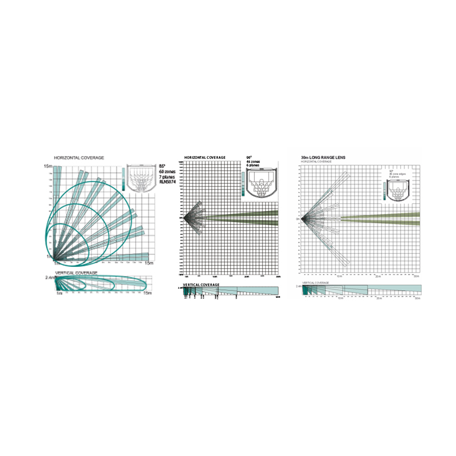 | PIR lens | 3 available lenses 1/2/3: 60/24/46 Zones & 7/6/6 planes |
