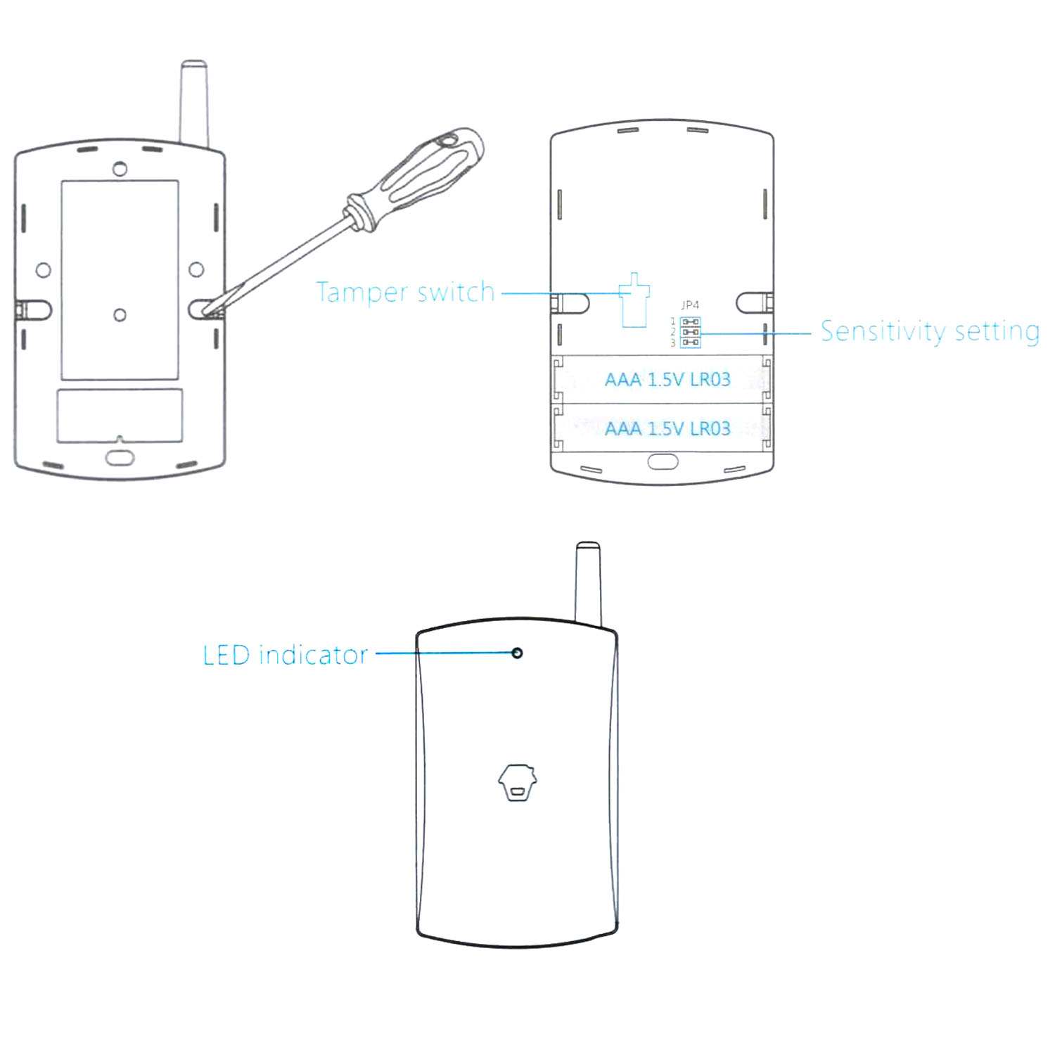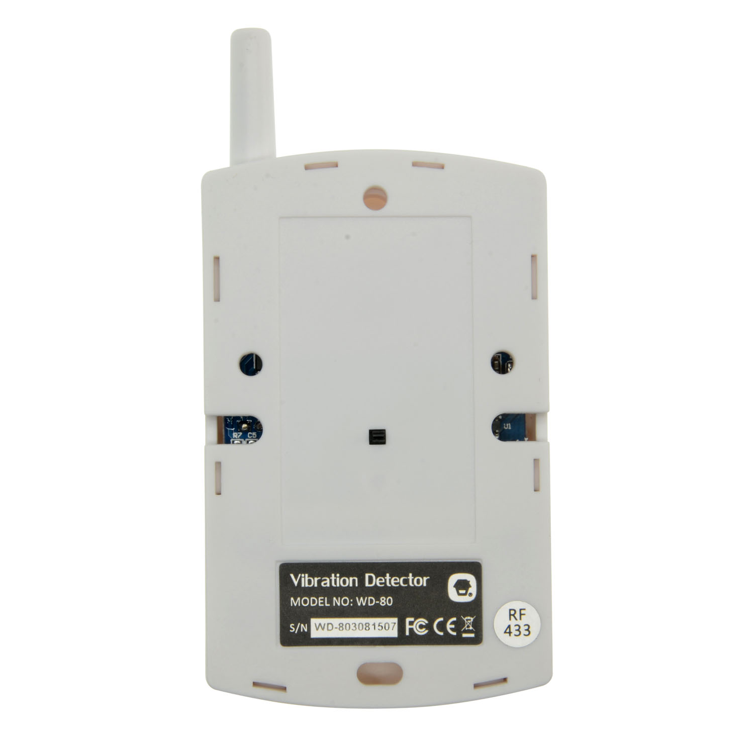 When it detects any vibration on the protected object, it sends a wireless alert to the control panel, which will trigger the alarm.