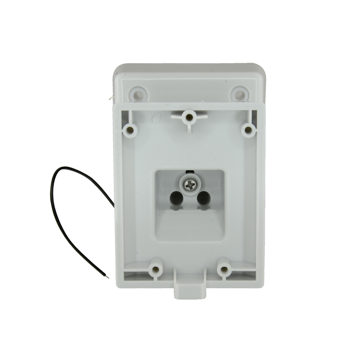Made of polycarbonate of 4 mm, which gives it great strength and durability in exterior, with areas of reduced thickness intended to practice cable passage holes. A toothed and easy adjustment joint, using a single screw makes it possible to orient the detector both horizontally and vertically, to an angle of 45º.