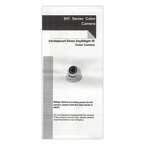 | Basic functions | OSD menu, Day/Night with IR-CUT (ICR) |