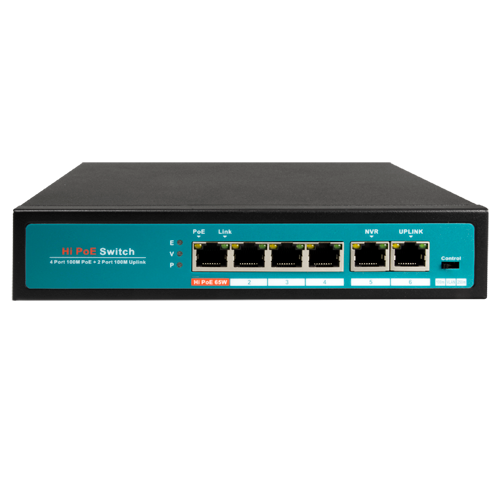 | Interfaz | 4 puertos PoE RJ45 10/100 + 2 Uplink |