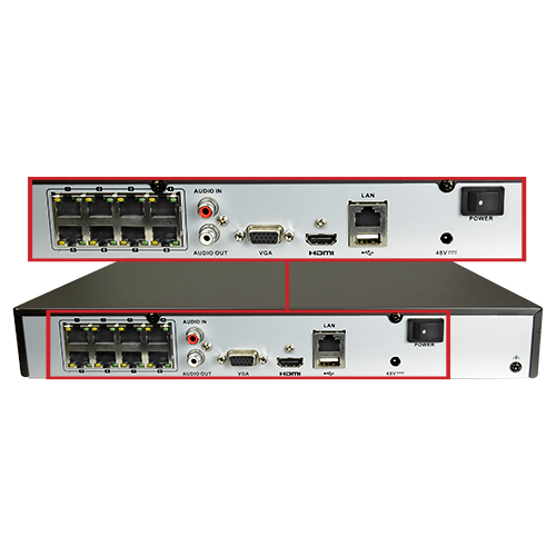 | Inputs for IP cameras | LAN port up to 8 channels |