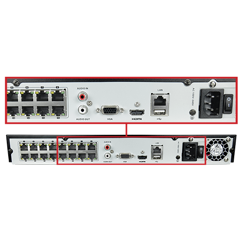 | Inputs for IP cameras | LAN port up to 16 channels |