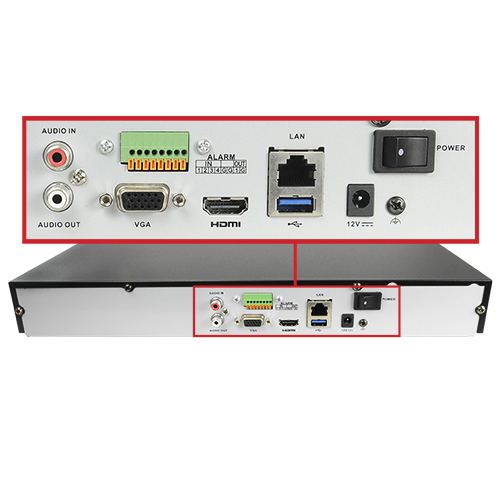 - HDMI 4K and VGA output / Alarms
